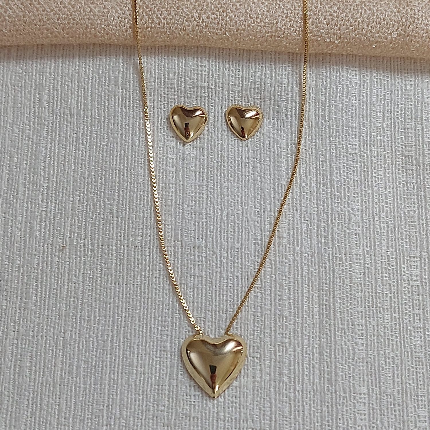 Descrição: Conjunto banhado em ouro 18k com pingente de coração.