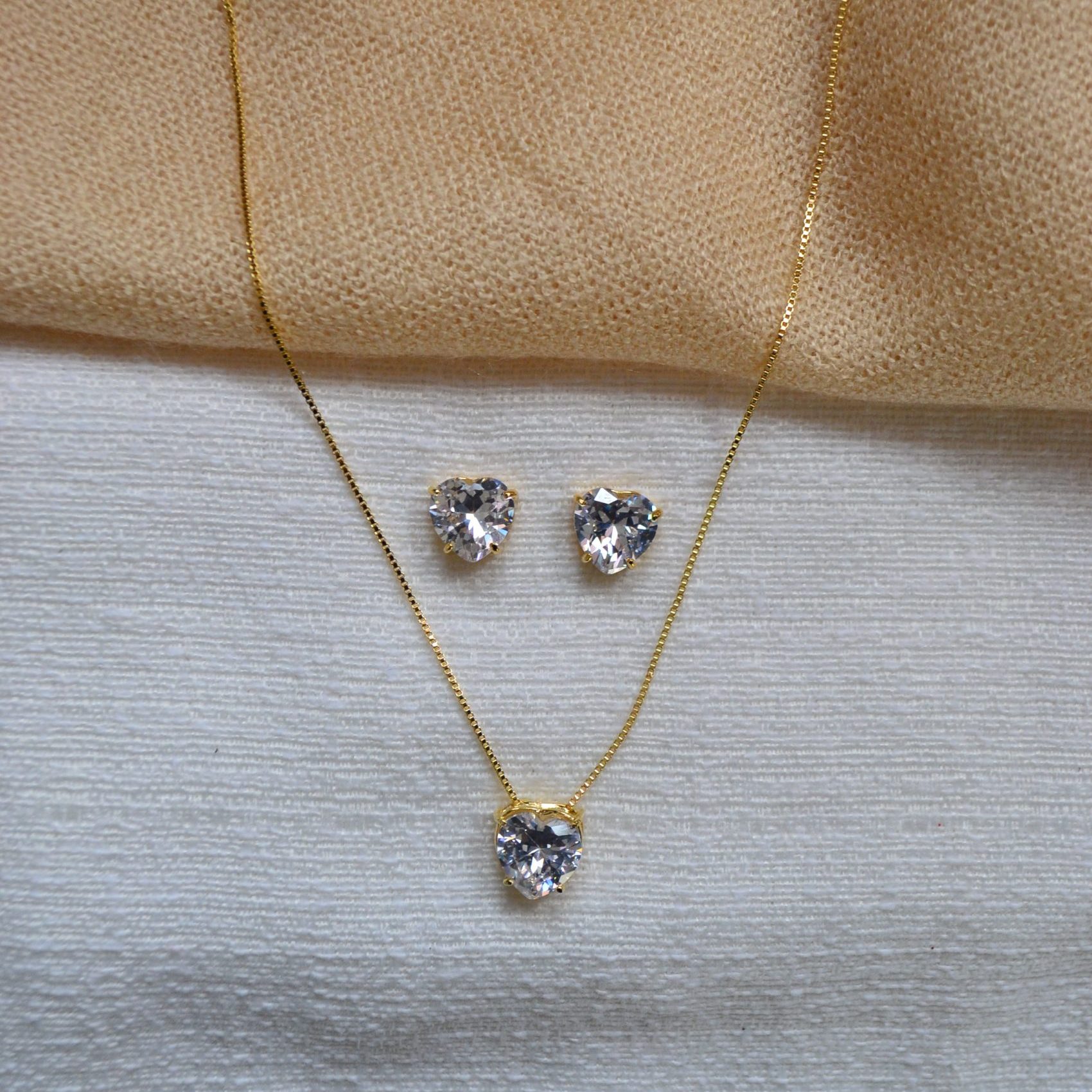 Descrição: conjunto banhado a ouro 18k, com pingente de zircônia.