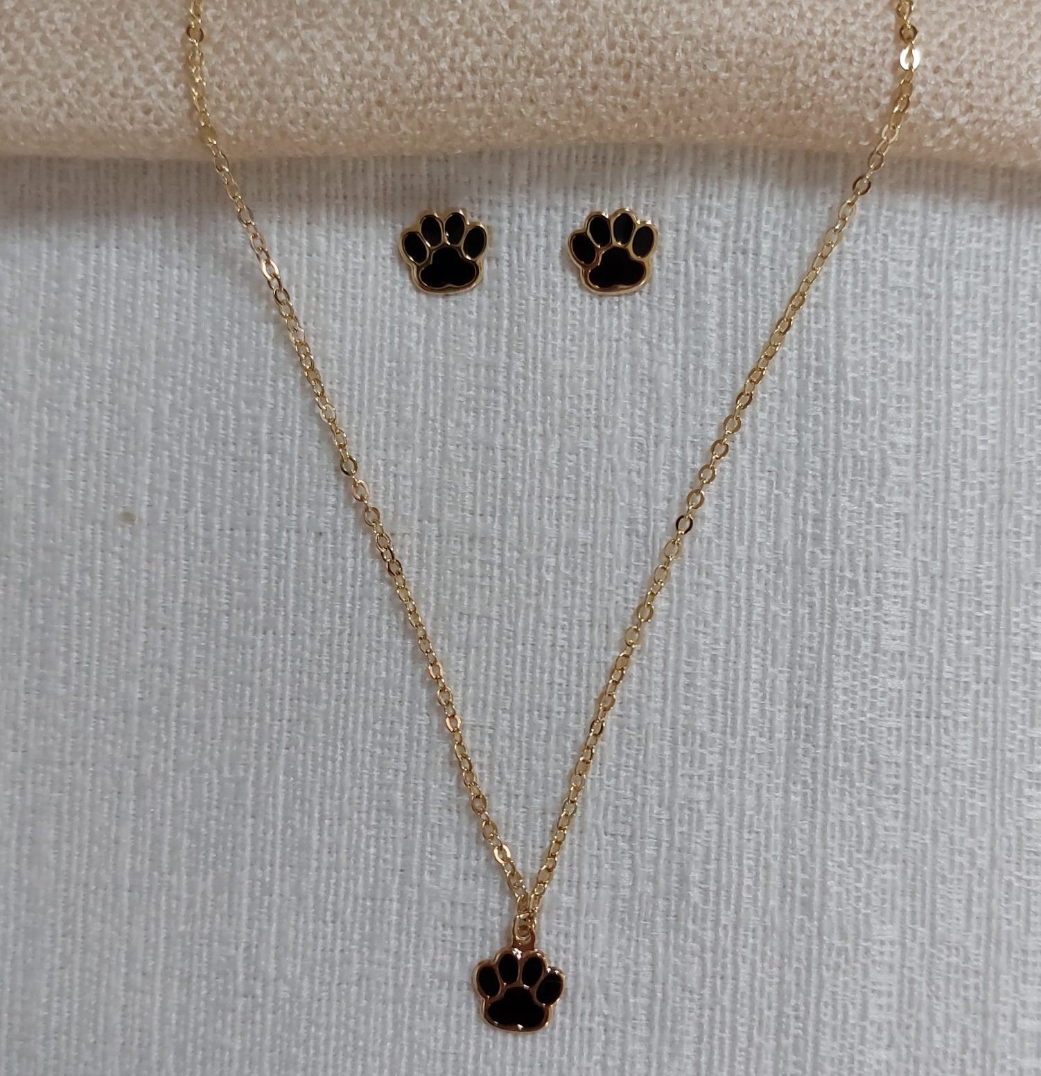 Descrição: conjunto infantil banhado em ouro 18k, com pingente de pata.