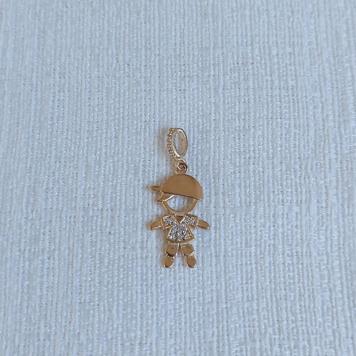 Descrição: Pingente de menino cravejado com microzircônia.