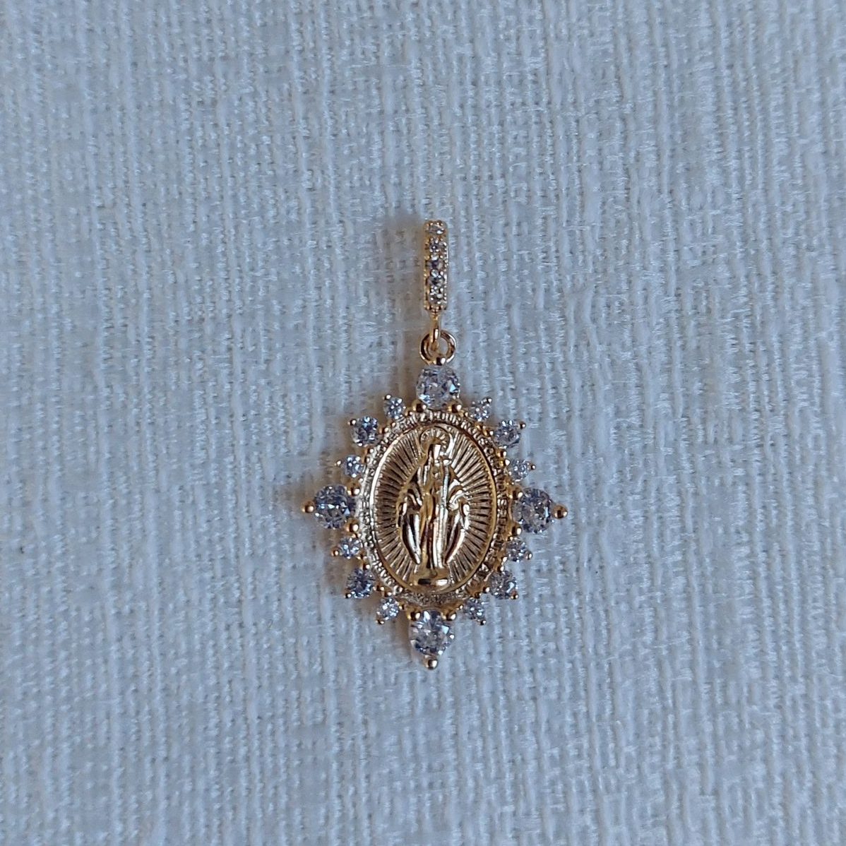 Descrição: pingente medalha Nossa Senhora Das Graças cravejado com microzircônia.