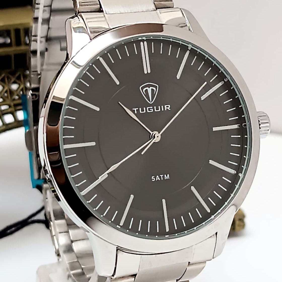 Descrição: relógio masculino Tuguir em aço inox, possui 1 ano de garantia apenas no funcionamento do relógio, a garantia não cobre a pulseira.
