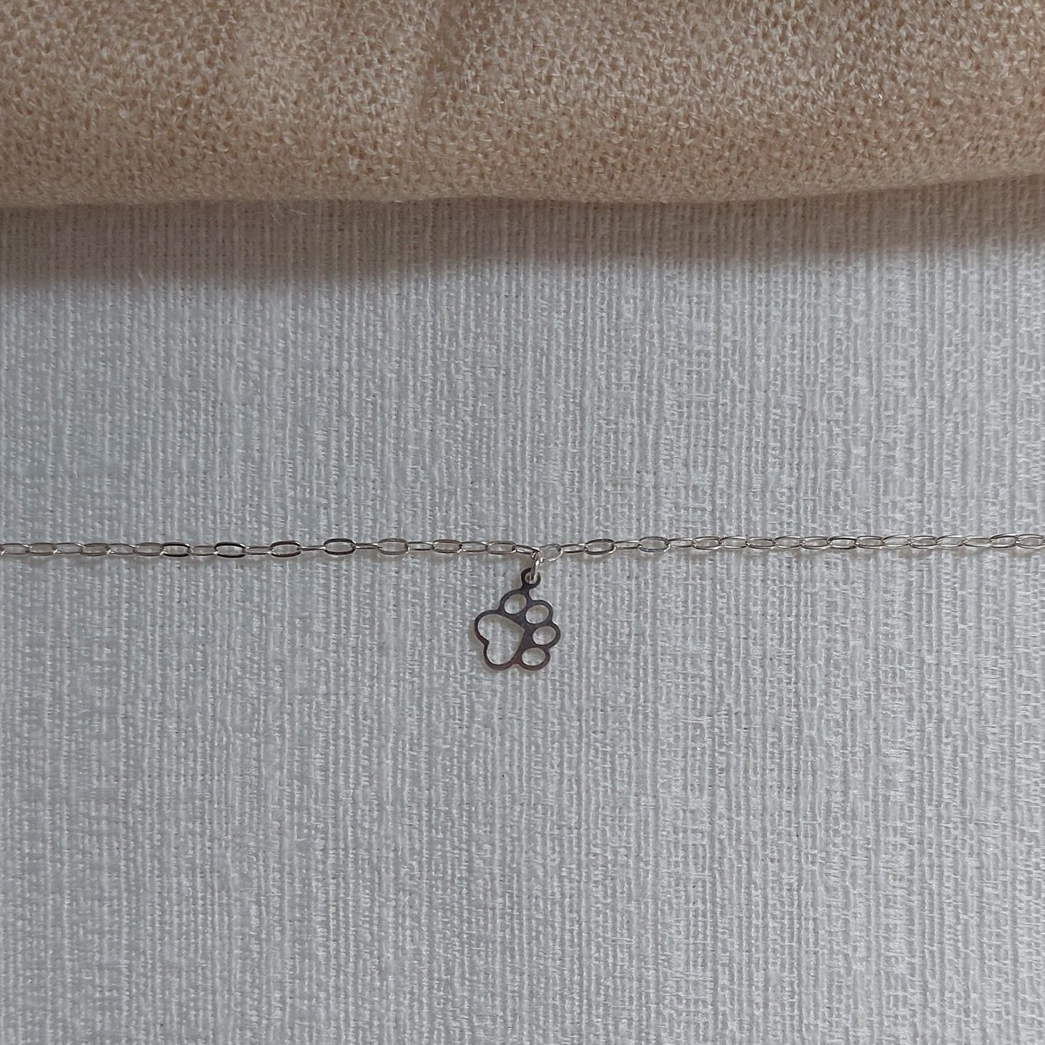 Descrição: tornozeleira em prata 925 com pingente de pata de cachorro, 23cm .